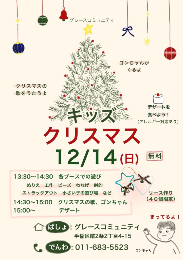 07Dec2025キッズクリスマスイベント , … 今年もキッズクリスマスをします♪みんなで楽しくクリスマスをお祝いしよう☺︎●日時:12月14日(日) 午後1:30〜●会場:グレースコミュニティ●参加無料 ▼お問い合わせTEL : 011-683-5523(火〜土 10:00-16:00)Mail : office@grace-community.or.jp
